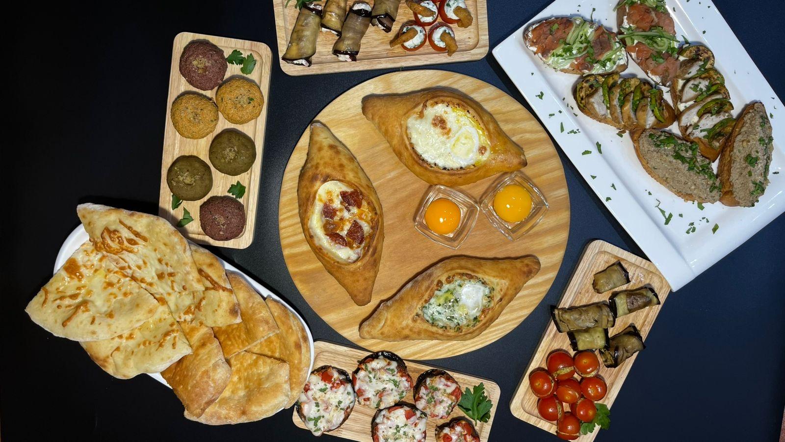 Кавказские фаршированные томаты - 1 порция, томаты с сыром и креветками - 1 порция, рулетики Бадриджани - 1 порция, рулетики из баклажан с сыром и томатами - 1 порция, сборное пхали - 1 порция, ассорти из брускетт - 2 порции, мартвили - 2 порции, хачапури по-Аджарски - 1 шт, хачапури с пепперони - 1 шт, хачапури с сыром и зеленью - 1 шт, лепешка сырная - 1 шт, лепешка чесночная - 1 шт.