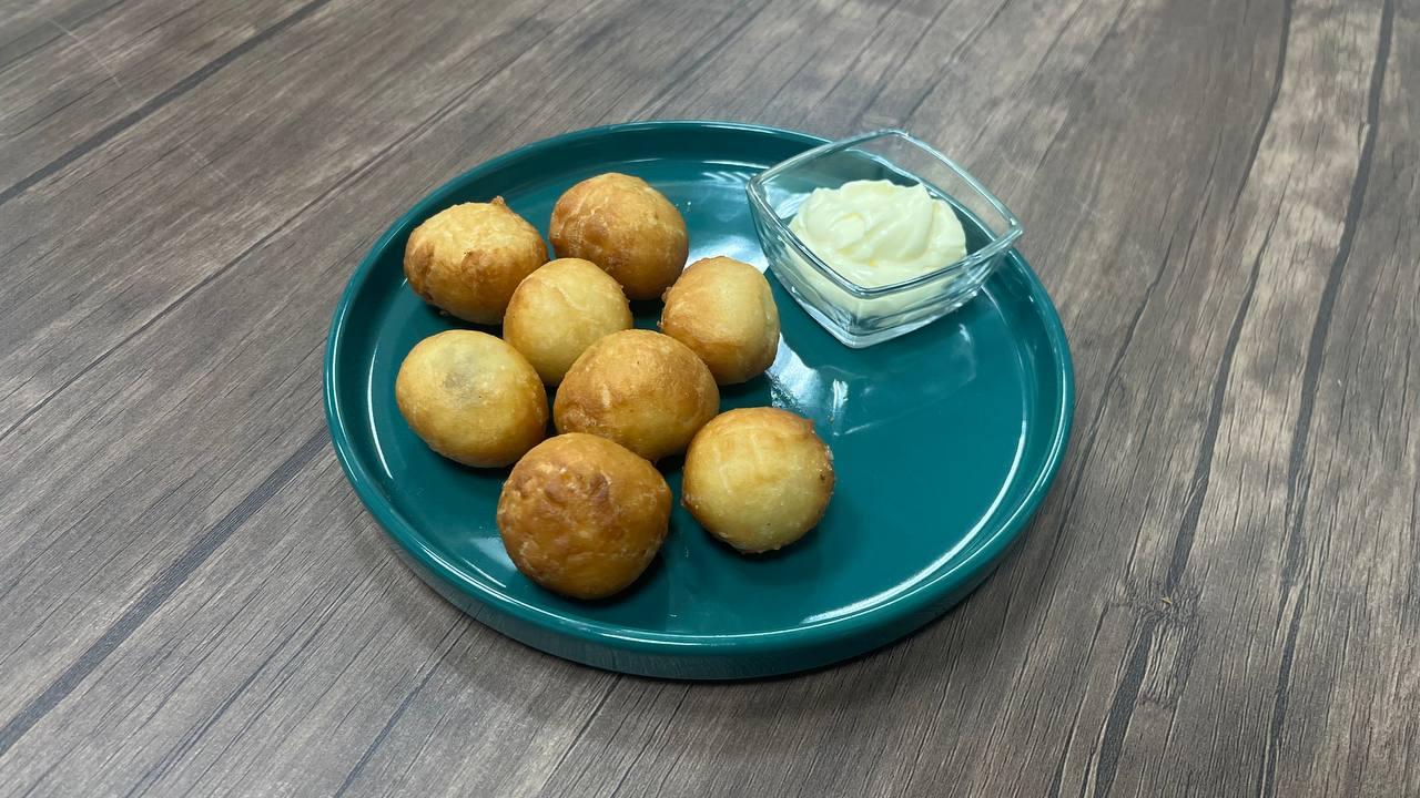 Пончики с мидиями и чесночным соусом